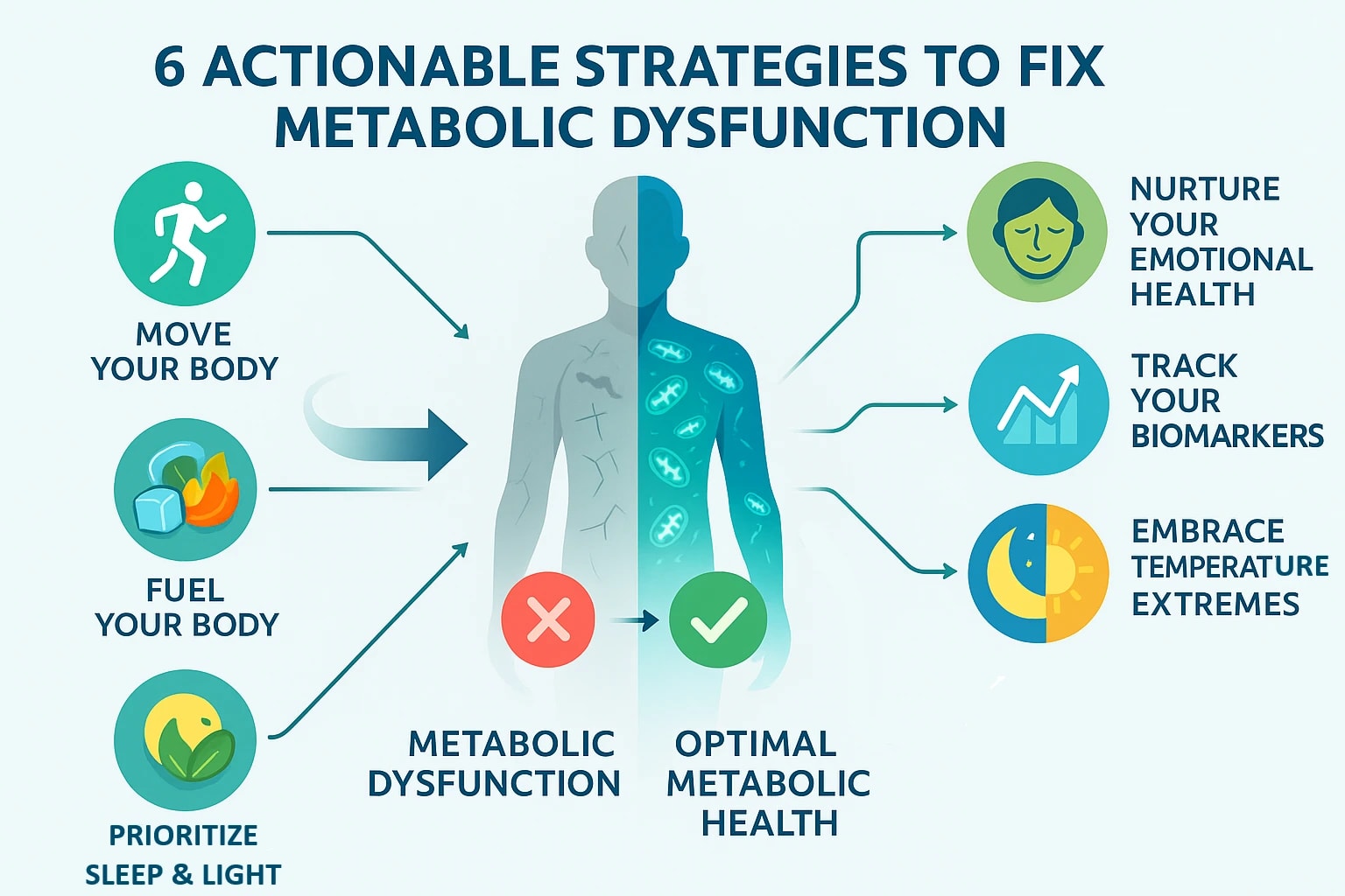 But here’s the good news: metabolic dysfunction isn’t a life sentence! There’s a lot you can do to improve your metabolism and power up your cells. In this post, we’ll explore 6 actionable ways to fix metabolic dysfunction and start feeling your best.
